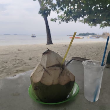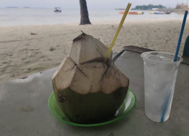 Es kelapa muda adalah minuman segar penyejuk dahaga dan pikiran yang sedang panas yang terbuat dari daging dan air kelapa yang masih muda. pilihan minuman yang cocok untuk menemani liburan anda di pantai P. Tidung.